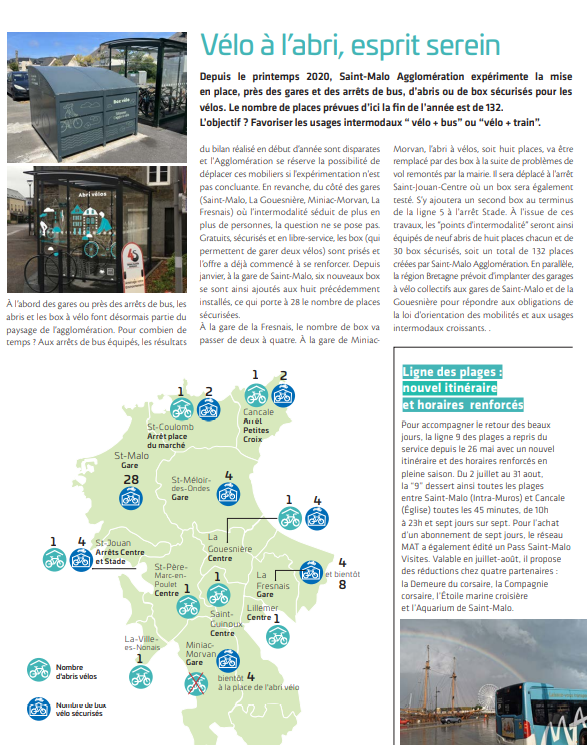 - Lancement des vélos en libre service : https://www.stmalo-agglomeration.fr/actualites/le-velo-mat-victime-de-son-succes/